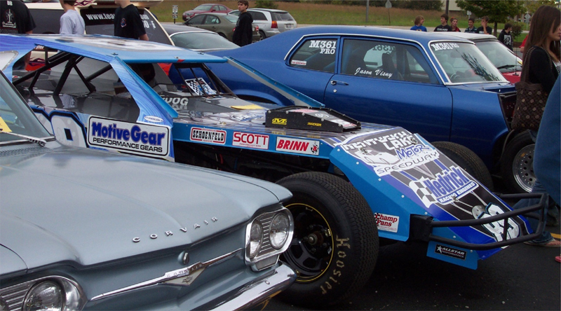 "Opie" displays his pristine #89 car at his high school, Lincoln Way Central