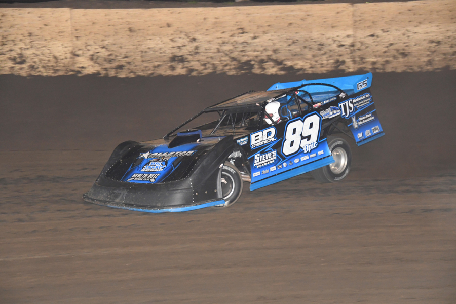 Mike Spatola III in a MARS Racing Series battle at Farmer City (IL) Raceway in September 2020 - Todd Healy Photo